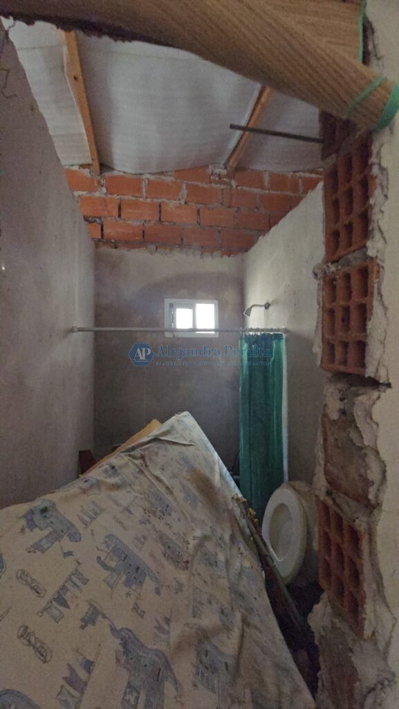 Se trata de una casa tipo de 2 dormitorios con un baño y un ambiente integrado de living-comedor cocina, y sobre el fondo del lote un garage a refaccionar con un departamento a terminar que cuenta con baño cocina comedor y un dormitorio